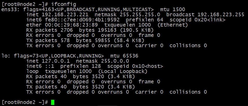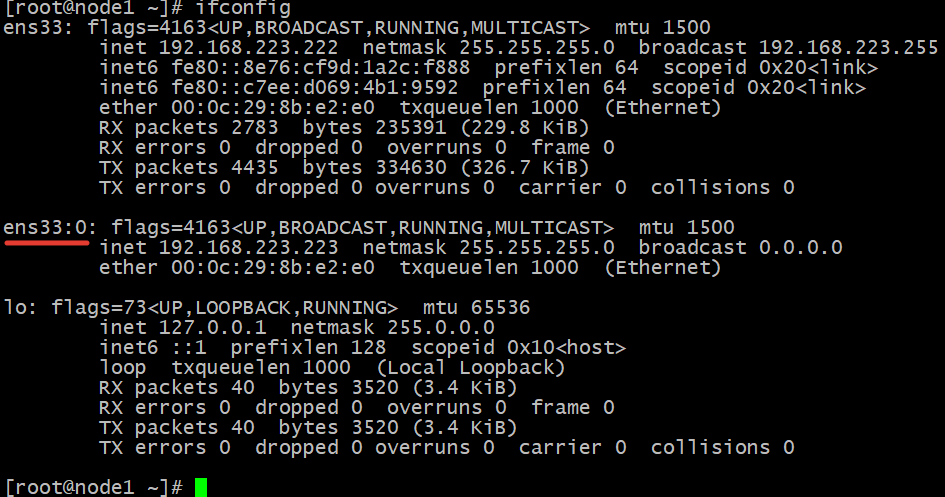 5. Проверяем, что на Master сервере появился новый сетевой интерфейс ens33:0